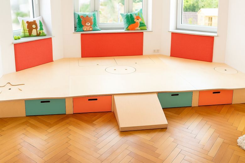 Wir gestalten individuelle und kreative Spieleinbauten für Kindergärten, die Kinder zum Staunen und Entdecken einladen. Ob Spielbereiche, Regale oder Stauraumlösungen – wir schaffen sichere und funktionale Umgebungen, die Freude am Spielen und Lernen fördern. Lassen Sie uns gemeinsam Räume gestalten, die Kinderaugen zum Leuchten bringen!